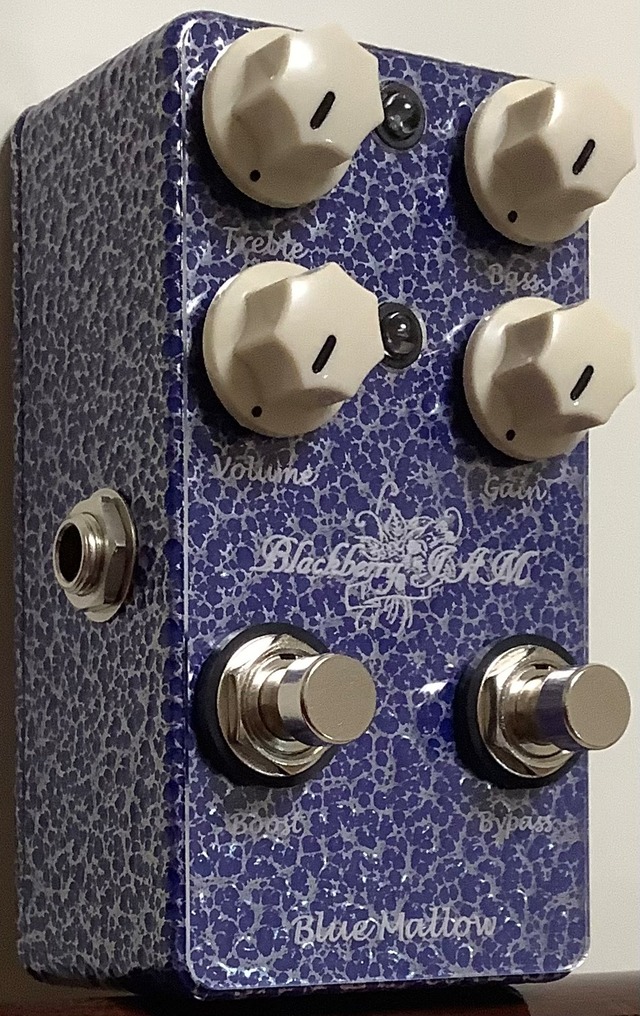 「Blue Mallowは、 倍音豊かな モダン ヴィンテージトーンを再現いたします 」 Volume:全体の音量を調整します Gain:全体の歪とサスティーンを調整します Treble:高域の歪と音量を調整します Bass:低域の歪と音量を調整します 煌めくクリアな高域、ふくよかで温かみのある中域、厚く芯のある低域。 ゲインコントロールにより、スモーキーな甘さが感じられるクランチサウンドからキレの ある図太いハイゲインサウンドまで、個性的な歪みを作り出します。 また、どんな繊細なニュアンスも逃がさず表現できる抜群のレスポンスと、ブーストをオンにすると未体験のレスポンスを味わえる、レスポンスブーストスイッチが大きな特徴です。 正に、60年代のオールドフェンダーアンプをブーストした時のような、集中して丁寧に弾かないとタイトなプレイが出来ないという感覚。 ブーストオンのサウンドは弾き慣れるのに少し時間がかかるかもしれませんが、紡ぎ出されたその多彩な表情は多くのギタリストの即戦力になる ことでしょう。 是非とも倍音豊かな極上トーンとアンプジャストな弾き心地をお楽しみください! SPECS 外部寸法(縦 幅 高): 112 mm X 60 mm X 56 mm 重量:370 g 消費電流:9VDC/ 8mA 内蔵バッテリー:9VDC 006P × 1 推奨 (DURACELL PROCELL 電源アダプター別売:9VDC, Negative Tips (Regulated recommended) トゥルーバイパス ※デザインは予告なく変更する場合がございますので、予めご了承くださいませ。 入力インピーダンス:1MΩ 出力インピーダンス:10KΩ